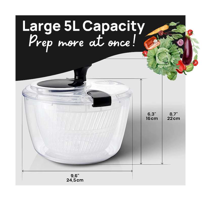 This Salad Spinner has all of the bells and whistles to make food prepping so quick and easy.